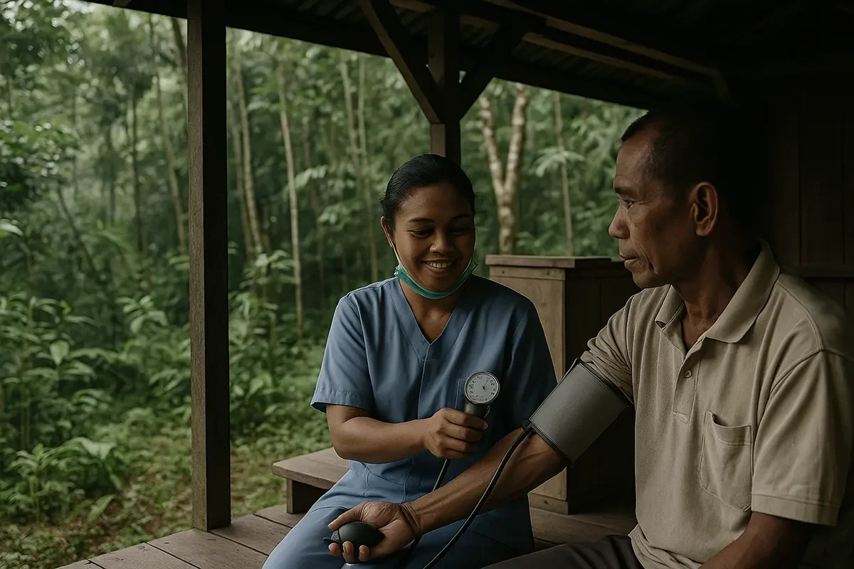 A woman in a rainforest community in Indonesia can access quality medical care for her family. Her child gets treated. But it's not charity—that would strip away her agency, her control over her own life. Instead, she can pay with seedlings she's grown, handicrafts she's made, or conservation work she completes.
